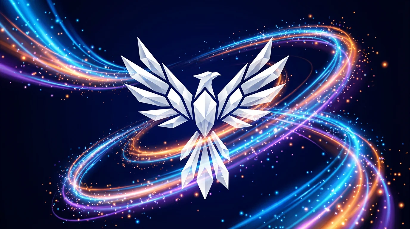 In the text prompt box, describe the motion and effects you want to see. Be specific, like 'swirling particles that form the logo' or 'a glitch effect that resolves into the logo'.